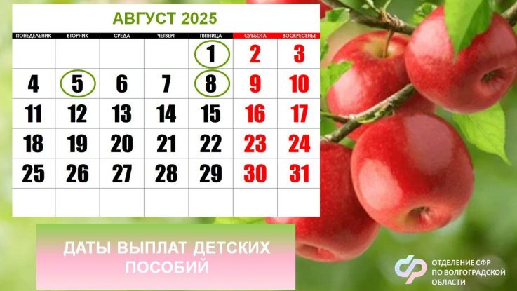 Выплатной период в августе начнётся раньше обычного – с 1-го числа месяца, так как 3 августа – стандартный день выплаты в нашем регионе – приходится на воскресенье. 1 августа на банковские счета волгоградцев региональное Отделение СФР перечислит: